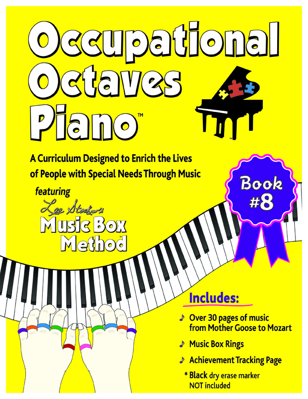 Occupational Octaves Piano™ is designed for people who may struggle to read and succeed with traditional music notes, but still want to play the piano. By the end of this book, learners will play complete the series by playing Chopin’s Nocturne and a G-Major FOUR octave scale!