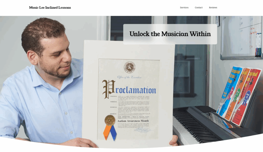 Explore our dedicated lesson platform to view schedules, learn more about our instructors, and book sessions. MusicLeeInclined.com is your central hub for everything related to private lessons, whether virtual or in-person.